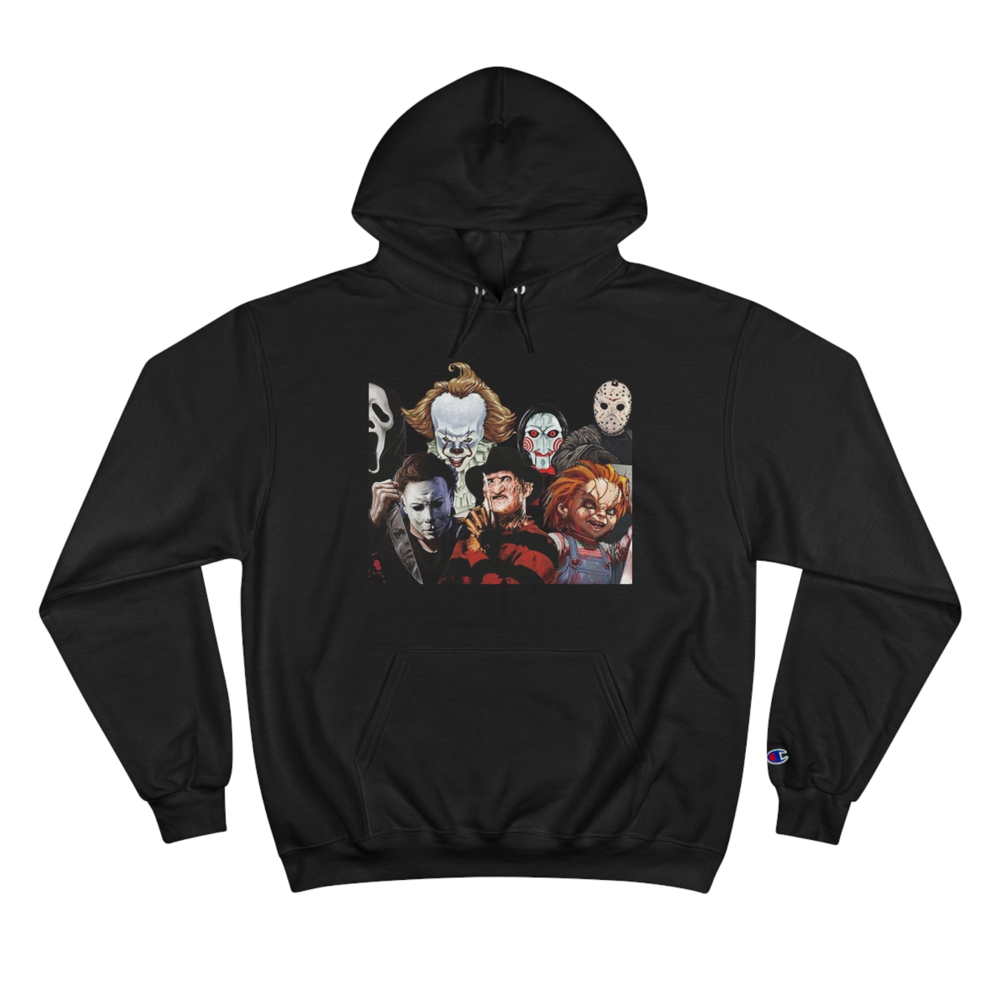 Regular price $76.02 USDSale price $76.02 USD Regular priceUnit price / per"Dive into creepy cool vibes with our Champion Horror Hoodie! It's like hanging out with Chucky, Scream, and It, but in a super awesome way. Scary...